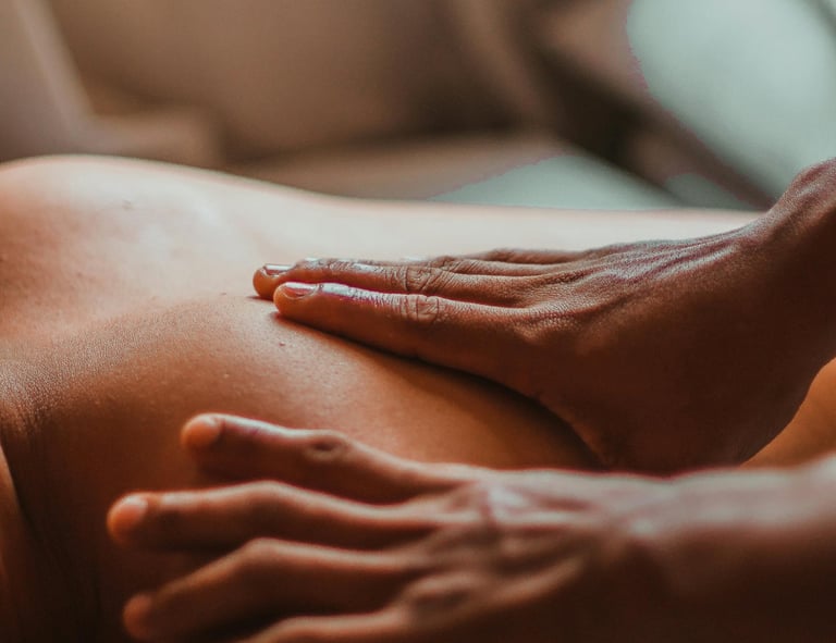Massage dorsale réalisé à l'aide de pierres chaudes